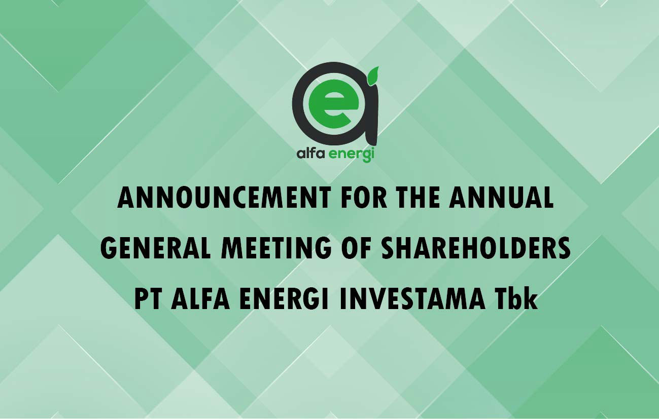 We hereby announce that PT Alfa Energi Investama Tbk (“Company”) intends to hold an Annual General Meeting of Shareholders (“Meeting”) on :